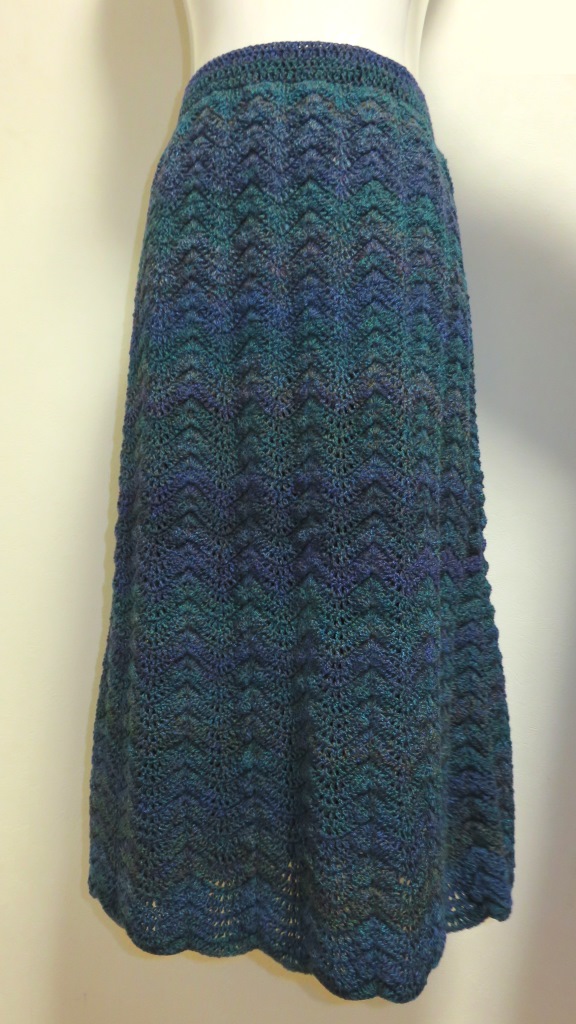 縁部分は模様編みから生じるスカラップを活かして引き抜き編みで締めました。