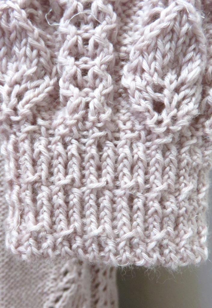 棒針編みの課題作品、ギャザースリーブのプルオーバーです。