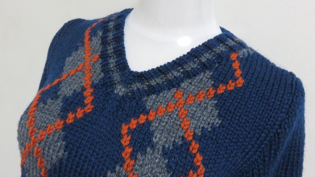 今回の作品は過去に編んだアーガイルのメンズベスト(ブログ未掲載)に似せて編みました。手編みを習うより前のこと、はじめて編んだ作品です。