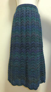 スカート部分はウエストから拡がり、膝の位置でパイナップル編みに続いています。