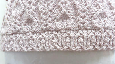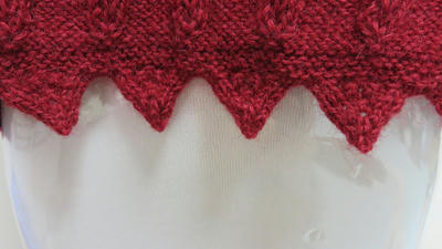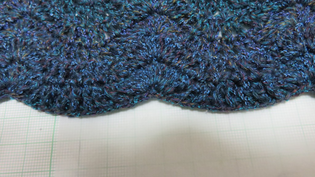 縁部分は模様編みから生じるスカラップを活かして引き抜き編みで締めました。