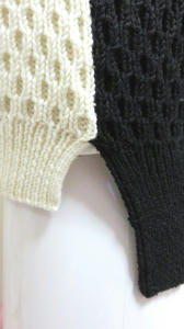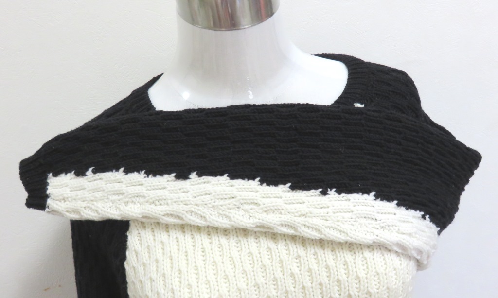胸部の境はすくいはぎで繋げています。異なる編地をはぐのは初めての経験でしたので拙い出来ですが、たいへん勉強になりました。