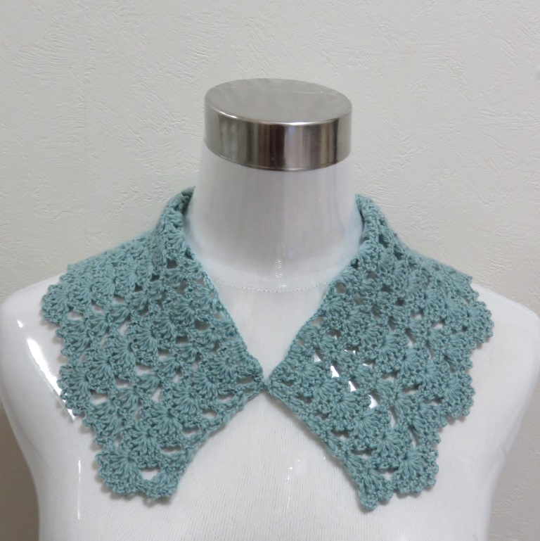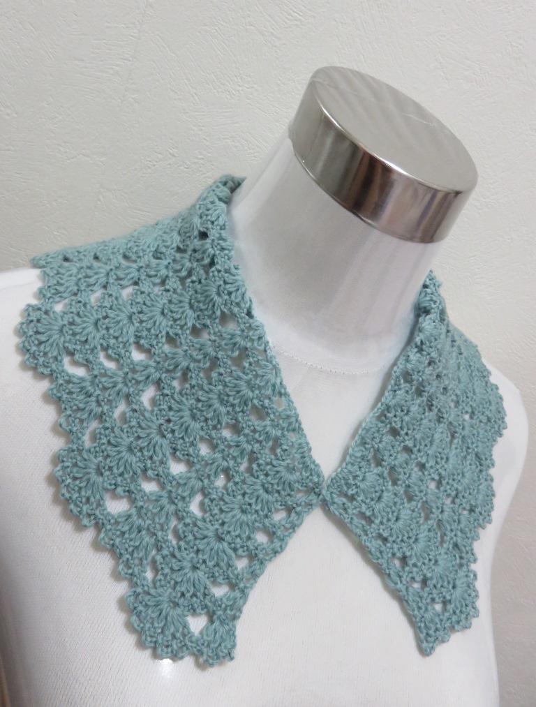 透かし模様が綺麗に出ていて我が作品ながら美しく編めました。