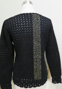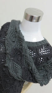 シルクの入った光沢あるダークグレーのストレートヤーンと、グレーのシルクモヘアでダイヤ柄の透かし模様を仕上げました。