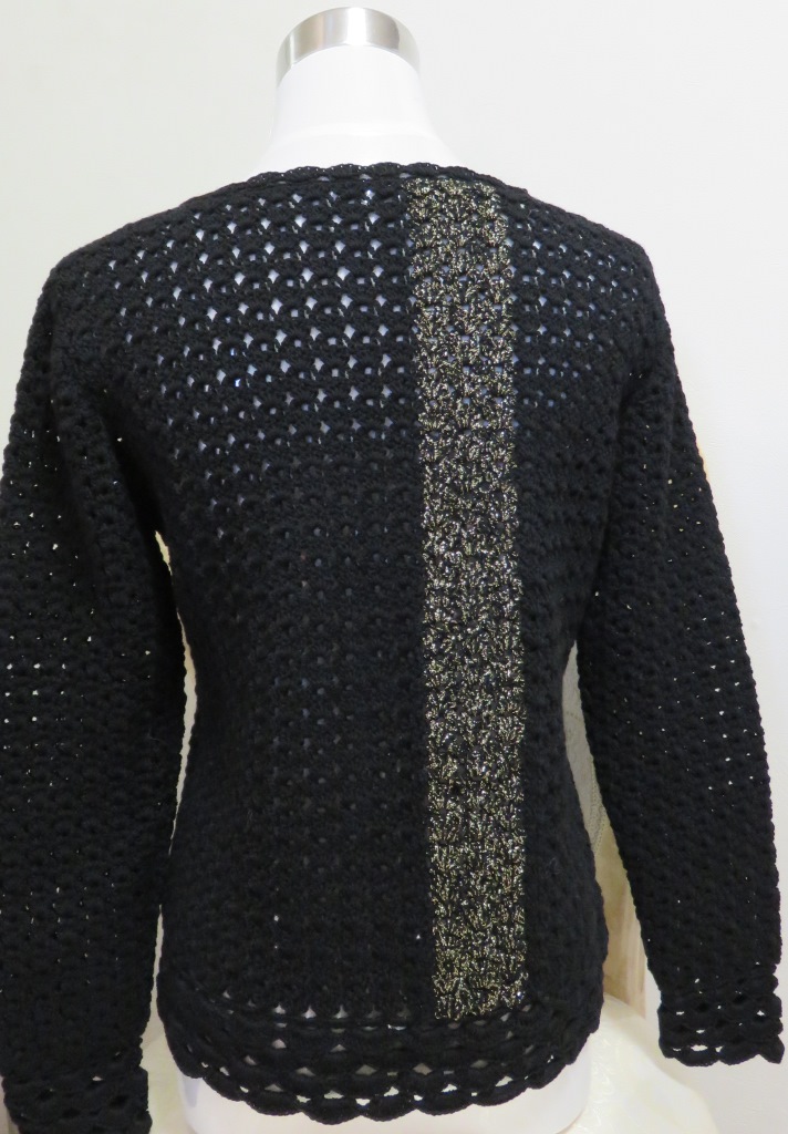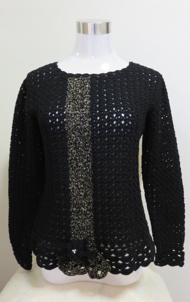 棒針編みの課題作品、プルオーバー。課題は「ハイネックのプルオーバー」だったのですが、デザイン変更を経てこのような形となりました。